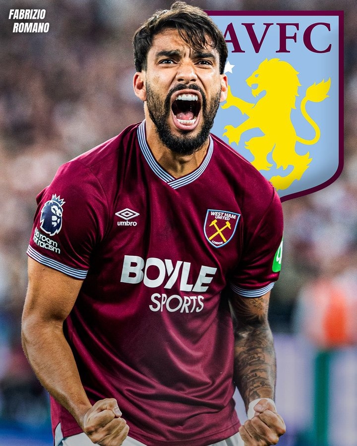 名记罗马诺报道,西汉姆联中场帕奎塔即将加盟阿斯顿维拉。