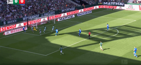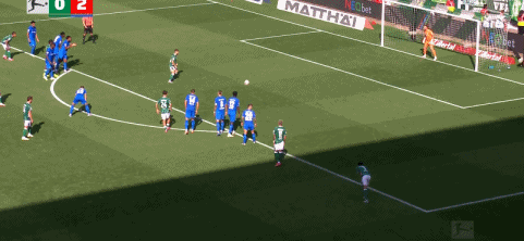 第43分钟,姆班古拉造点,施密德操刀点射命中,不莱梅将比分迫近至1-2。